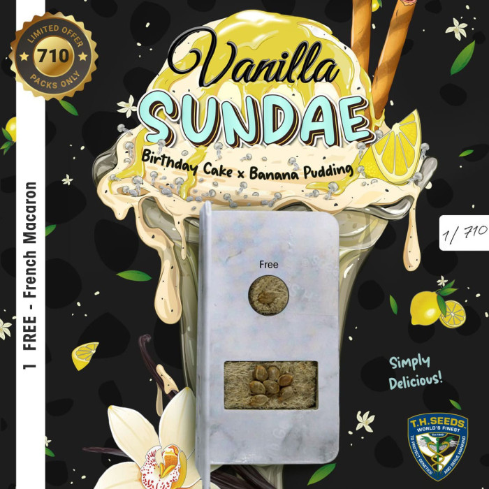 Vanilla Sundae 710 Special Pack feminised - сорт коноплі, який заслужено займає почесне місце на світовому ринку канабісу. Штам завоював визнання завдяки своїм характеристикам, серед яких високі показники врожайності, відмінний імунітет, приємний терпеновий профіль, універсальність, а також інші унікальні властивості.